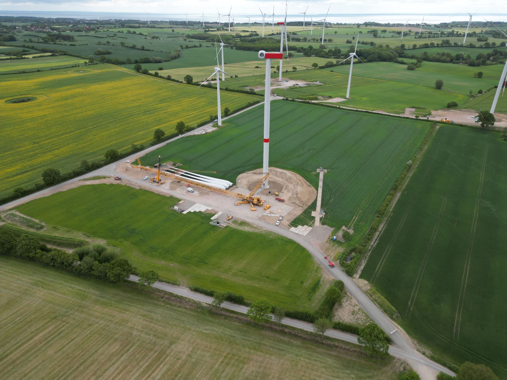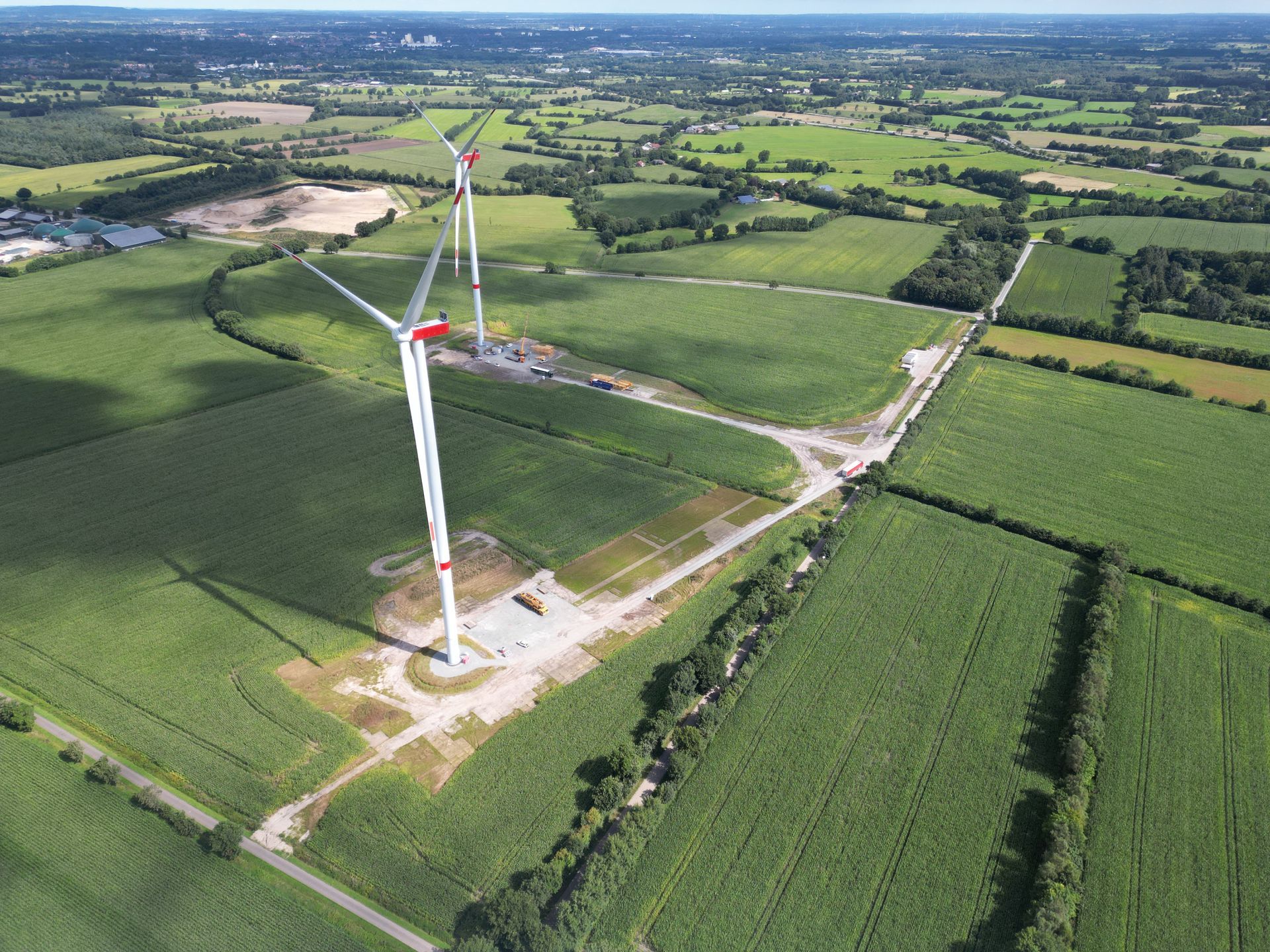 In der Gemeinde Gremersdorf bei Heiligenhafen hat die Windpark Heiligenhafen-Gremersdorf GmbH & Co. KG zwei Windenergieanlagen der Firma Siemens Gamesa SG 155-6.6 mit einer Gesamthöhe von 200 m gebaut. Das Baubüro Kaatz GmbH & Co. KG unterstützt das vom Projektierer Cimbergy GmbH & Co. KG geplante und betreute Projekt durch Übernahme der Oberbauleitung. Insbesondere Ausschreibung, Vergabe, Baubegleitung und Bauüberwachung im Wege- und Fundamentbau lagen direkt in der Hand des Baubüro Kaatz GmbH &Co. KG. (Foto: Baubüro Kaatz)