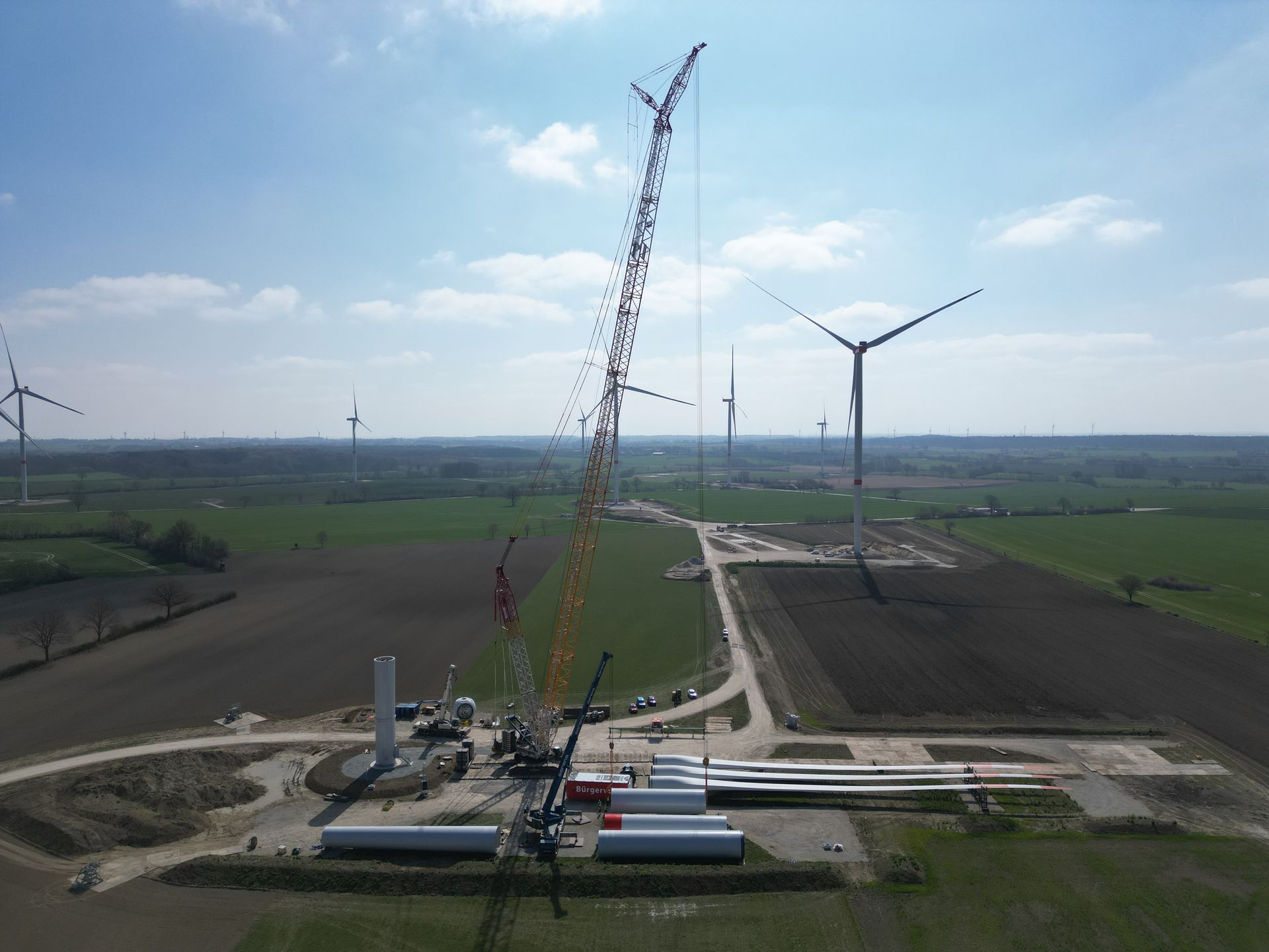 Im Kreis Ostholstein in den Gemeinden Ratekau und Scharbeutz baut die Trave Erneuerbare Energien GmbH & Co. KG vier Windkraftanlagen der Firma Nordex 3x N133-4.8 (Gesamthöhe 192,0 m) und 1 x N149-5.7 (Gesamthöhe 199,5 m). Das Baubüro Kaatz GmbH & Co. KG begleitet das Projekt durch Übernahme der Oberbauleitung. Insbesondere Ausschreibung, Vergabe, Baubegleitung und Bauüberwachung im Wege- und Fundamentbau liegen direkt in der Hand des Baubüro Kaatz GmbH &Co. KG. (Foto: Baubüro Kaatz)